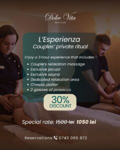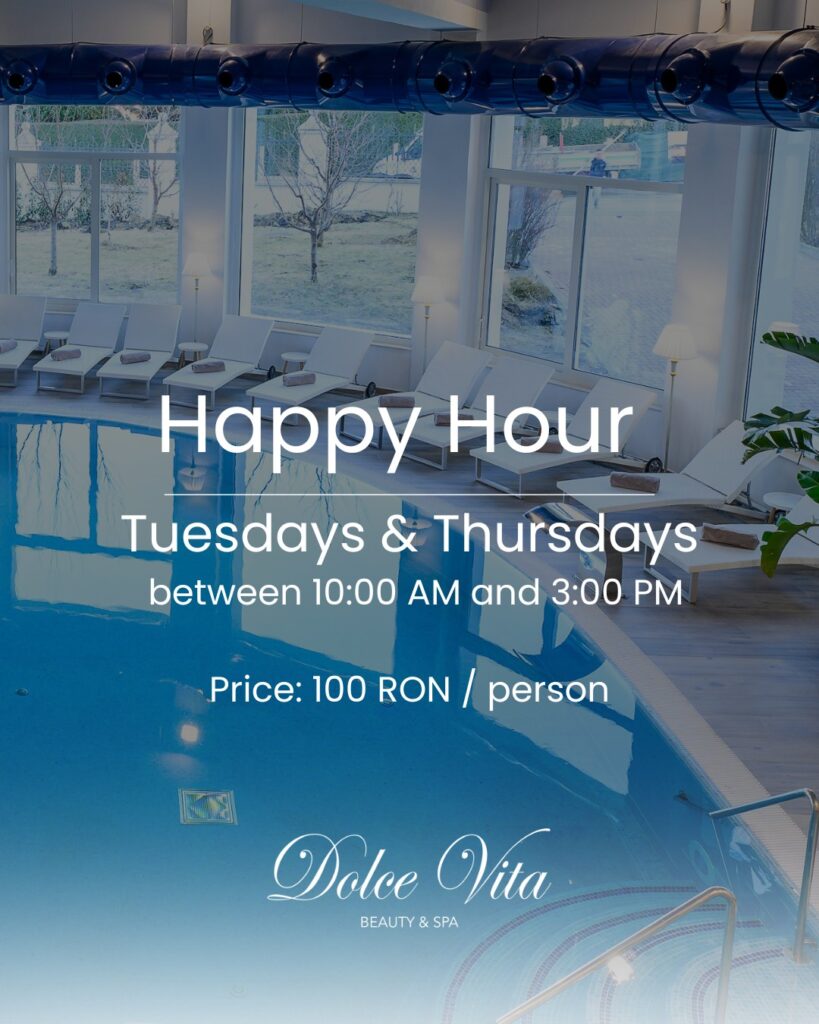 We warmly welcome you every Tuesday and Thursday to enjoy a well-deserved midweek break. Between 10:00 AM and 3:00 PM, relax in an elegant and tranquil atmosphere with SPA access at a special rate of 100 lei / person. Dolce Vita SPA features one of the most generous indoor pools in Cluj-Napoca.