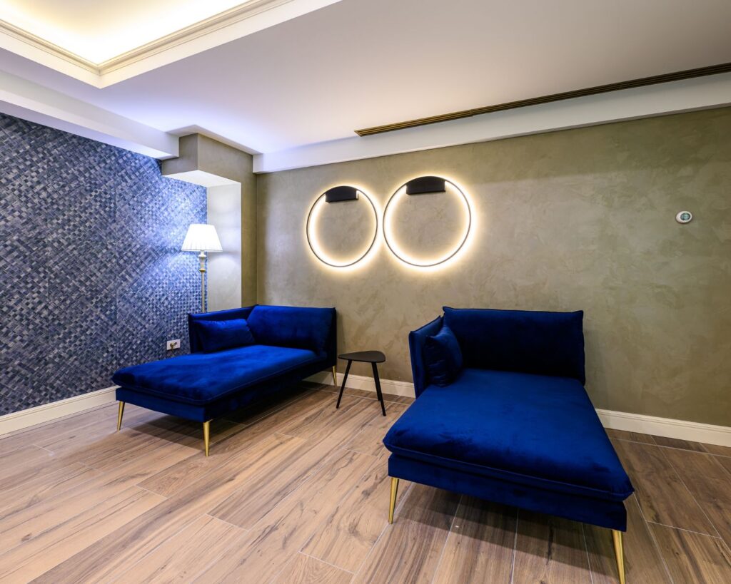 - Wellness access: indoor pool, jacuzzi, saunas, sensory showers, salt room